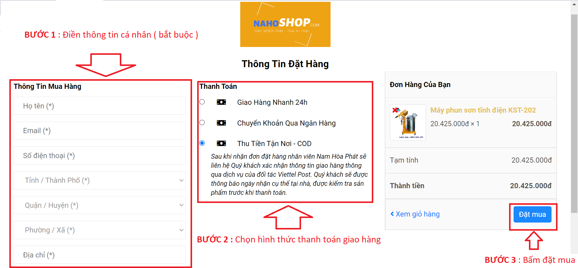 Bước 3 : Tiến hành đặt hàng bằng 3 bước đơn giản