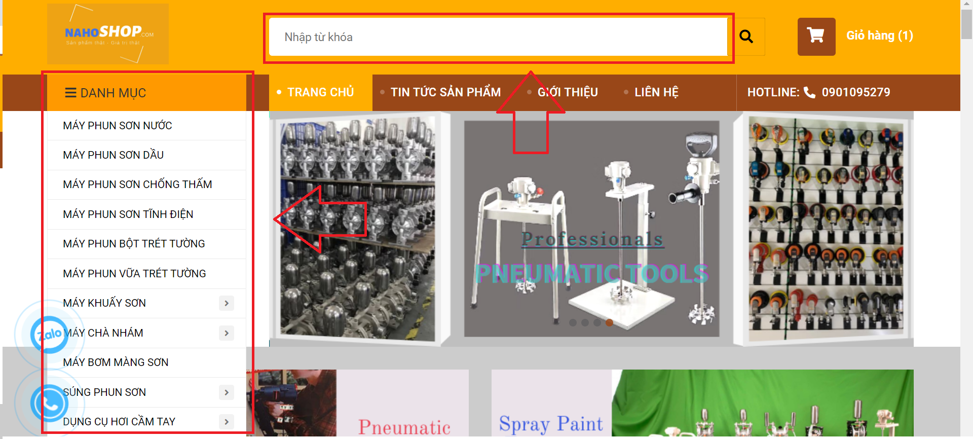 Quý khách hàng có thể tham khảo tại Danh mục sản phẩm hoặc gõ ở Ô tìm kiếm như hình bên dưới: