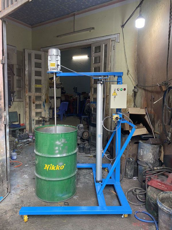 Máy khuấy thùng ibc 1000 động cơ điện nâng hạ bằng ben khí nén