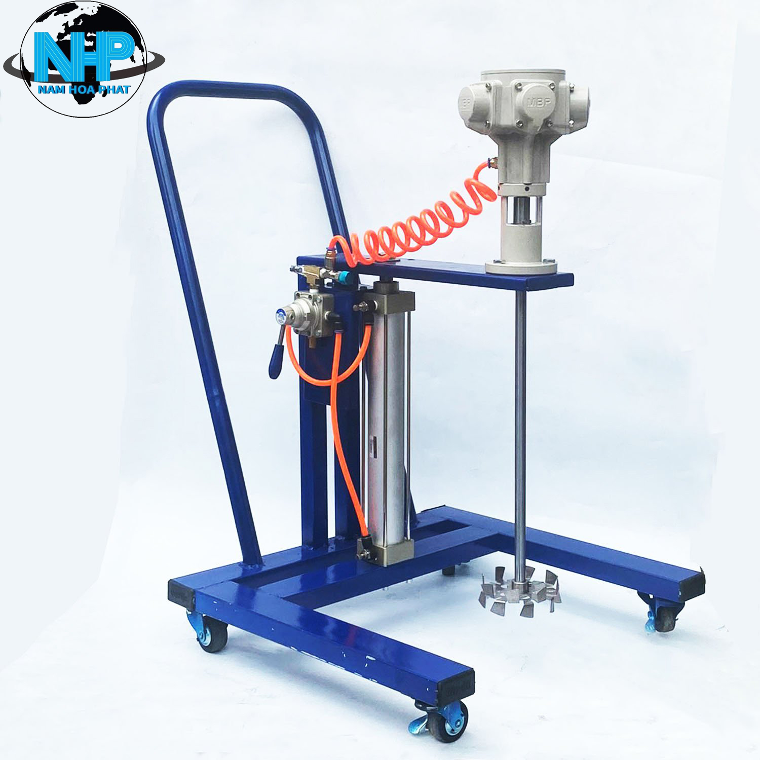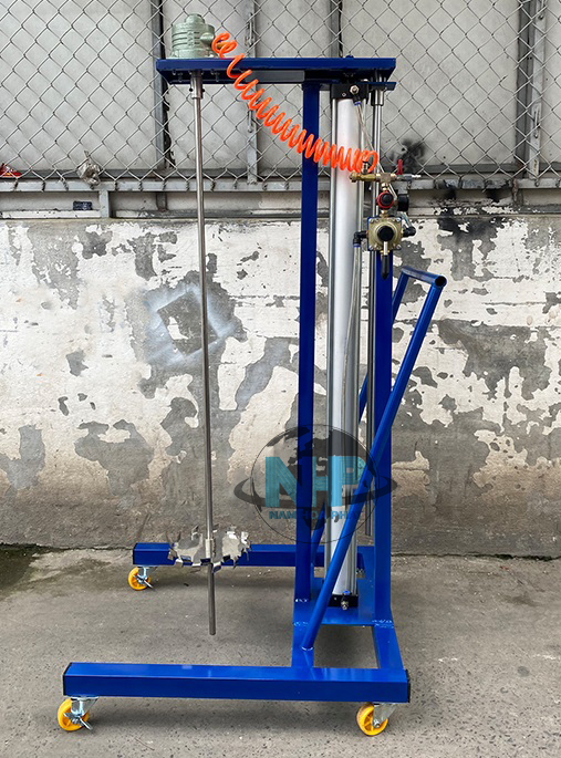 - Thân máy khuấy sơn nâng hạ 5 piston được gia công phù hợp cho mọi nhu cầu nhà xưởng nhỏ và lớn, sử dụng động cơ khí nén đảm bảo an toàn chống cháy nổ.