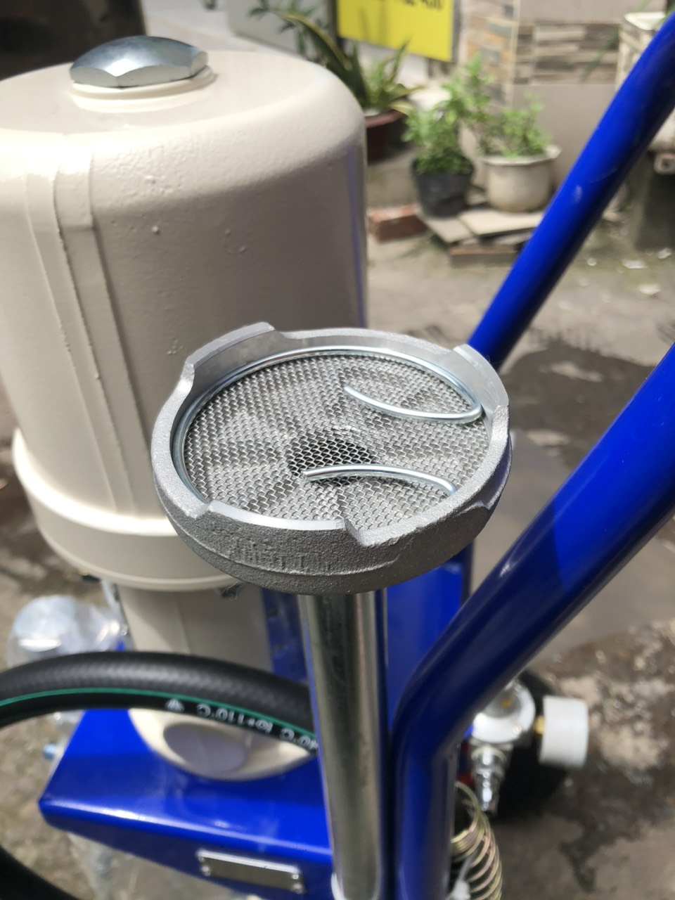 - Bộ ống hút sơn: Gồm cục lọc gắn đầu ống hút đường kính 25mm x dài 500mm + dây áp lực chịu mài mòn. Nếu Quý Khách Hàng bỏ phần cục lọc đầu ống hút thì Bơm Pitton rất có thể hút cả cục sơn to hoặc rác bay vào…Như vậy sẽ làm ảnh hưởng tới chất lượng của Zoăng Phớt + Bầu Lọc Sơn, Dây Sơn và Béc Phun Sơn.