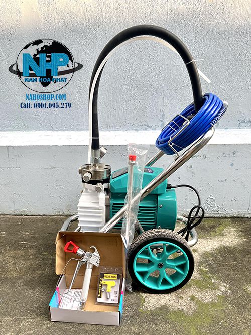 - Động cơ điện dây đồng 100%,công suất 4000W, áp suất tối đa đạt được 3000PSI, đáp ứng cho nhiều nhu cầu phun sơn công nghiệp như sơn nước tường nhà , sơn dầu, sơn Epoxy 2 thành phần, sơn chống cháy, sơn kết cấu thép,...