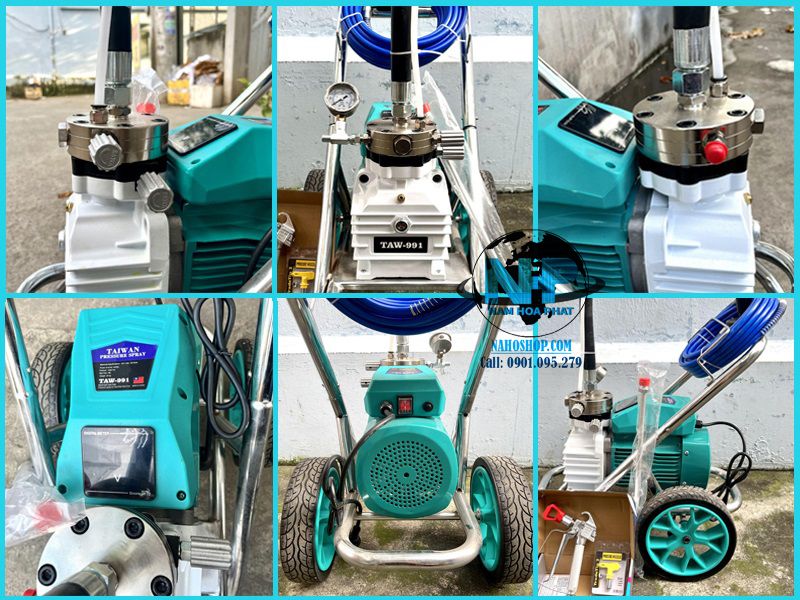 - Nếu bạn đang chán nản với những dòng máy phun sơn kém chất lượng giá rẻ, làm chậm tiến độ thi công do việc sửa chữa, bảo trì máy liên tục, máy phun sơn TAW-991 sẽ giúp bạn cải thiện được mọi vấn đề khó khăn với mức chi phí hợp lý nhất, rất đáng để bạn đầu tư và trải nghiệm.