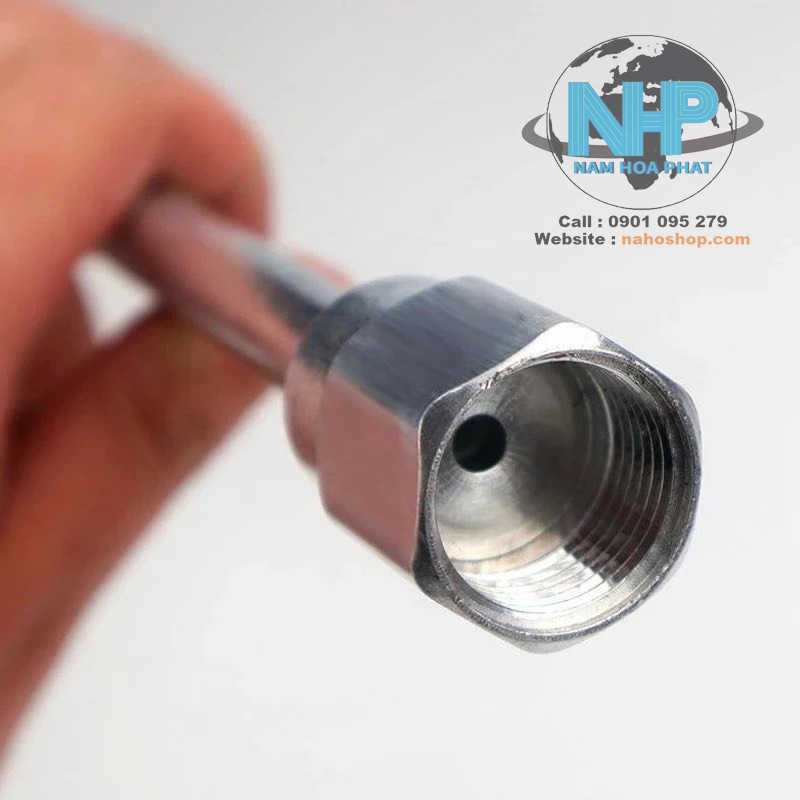 - Vật liệu cần nối dài súng phun sơn được làm bằng nhôm đúc nguyên khối chắc chắn, chiu được áp lực lên đến 350Bar.