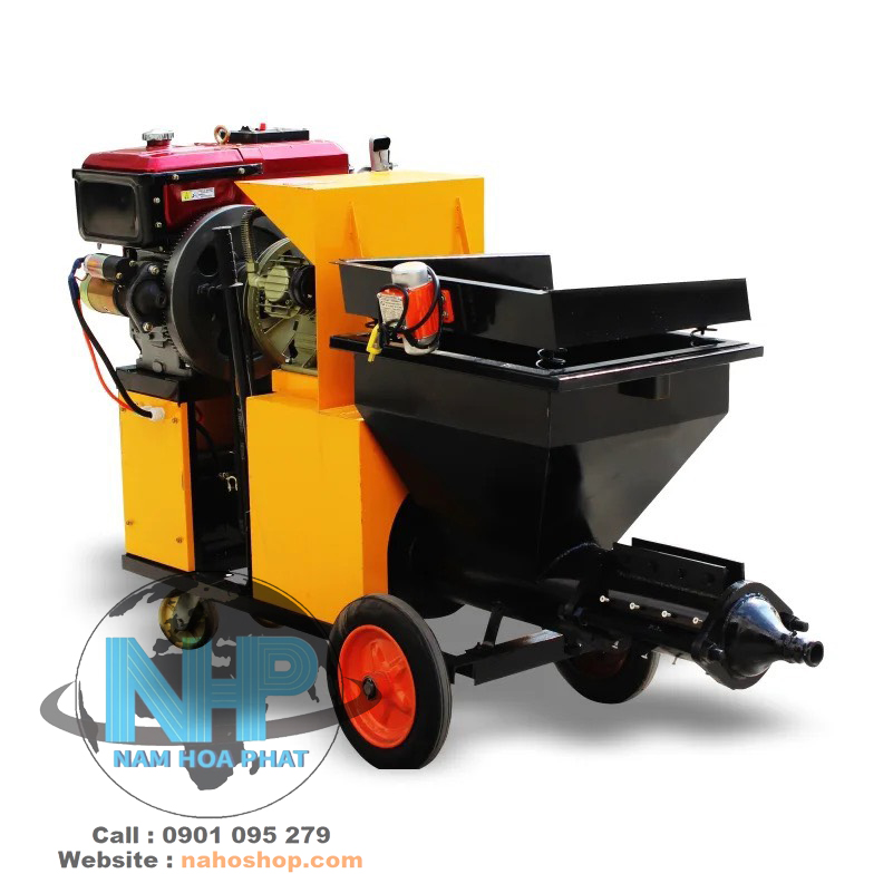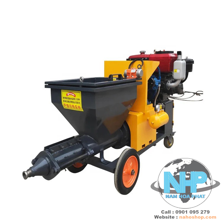 Máy phun vữa sử dụng động cơ dầu Diesel mạnh mẽ giúp máy hoạt động ổn định không phải phụ thuộc vào nguồn điện như các dòng máy phun vữa thông dụng, mang lại hiệu suất làm việc cao trong việc phun vữa trét tường cho các công trình xây dựng, phù hợp phun vữa cho nhà dân, nhà yến các công trình hòn non bộ, phun giả núi, giả tường đá nhà yến, vv
