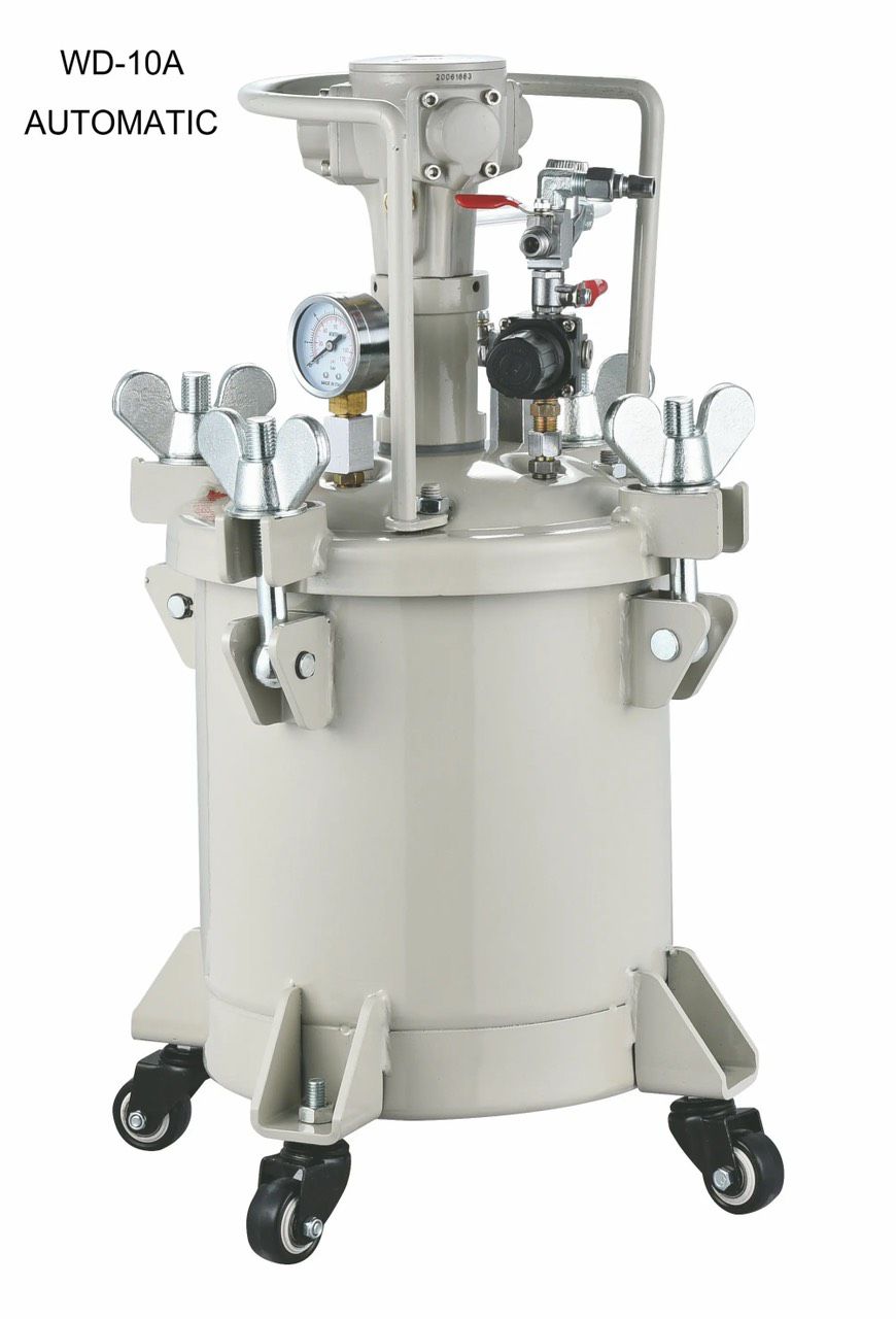 - Nồi trộn sơn dung tích 10 lít chuyên dùng trong các ngành công nghiệp sơn nhỏ và vừa, công dụng khuấy trộn và phun sơn, giúp đạt được hiệu quả chất lượng sơn.