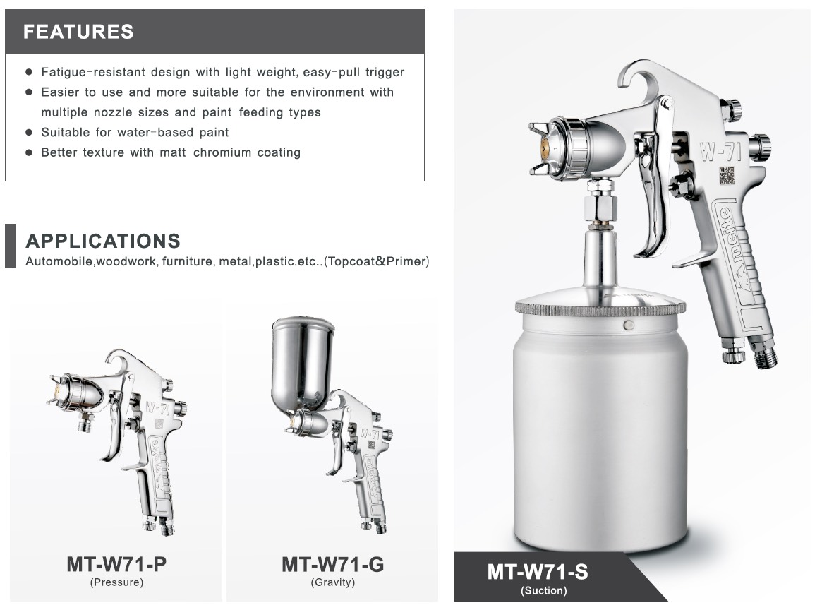 Súng phun sơn Meiti MT-W71 được sản xuất theo tiêu chuẩn chât lượng, có thể tin tượng lựa chọn.