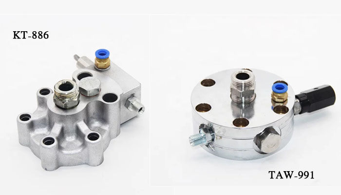 - Chất lượng vẫn là hàng nhập khẩu từ Đài Loan nhưng máy phun sơn KT-886 vẫn giữ các chi tiết cũ chưa được cải tiến như máy phun sơn TAW-991 ví dụ như đầu bơm KT-886 bằng nhôm còn TAW-991 bằng Inox.